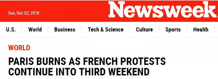 但依然没有阻止12月1日的黄马甲运动。在示威声浪中,有人开始喊出“马克龙下课”的口号。