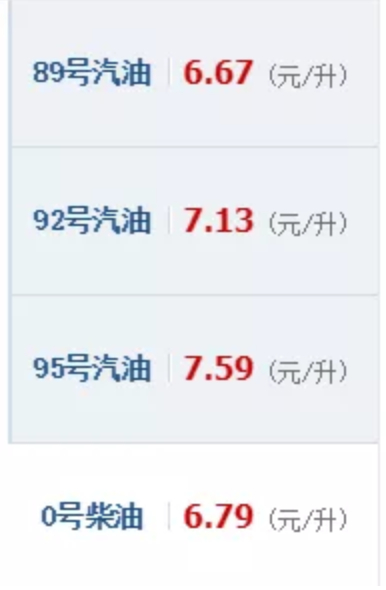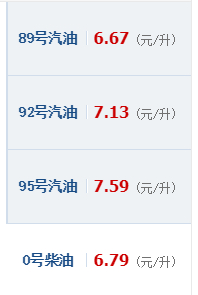 这是现在北京的含税油价