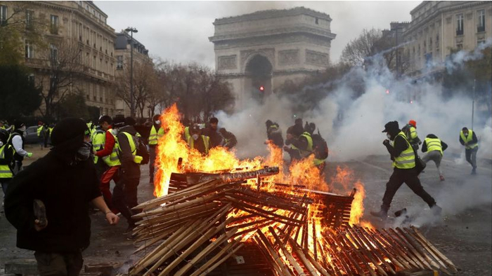 在过去的这个周末,巴黎再次发生了暴力游行示威活动,店铺被打砸,汽车被焚毁,石块横飞,催泪瓦斯弥漫。