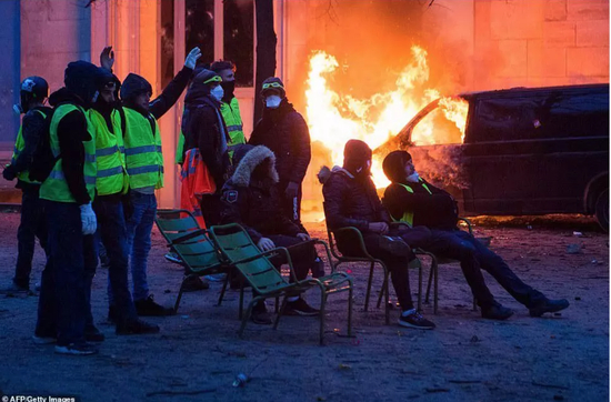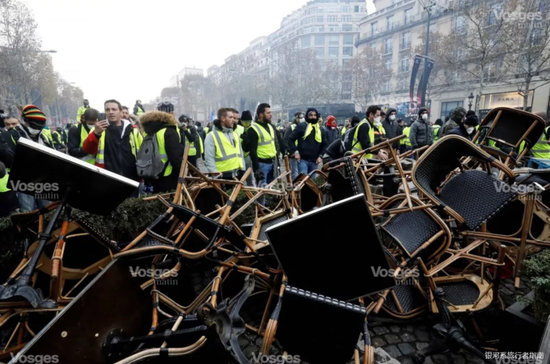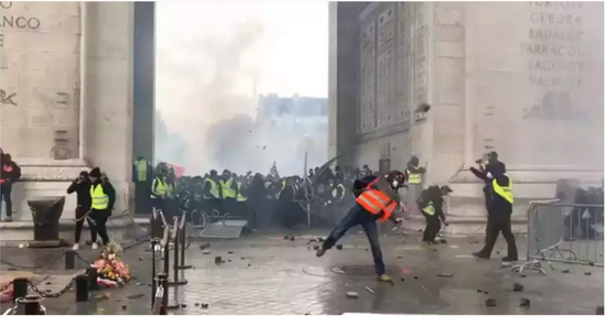 作为法国、作为世界人都爱的巴黎的名片,香街是具有标志意义的,也是历来游行的高地,黄马甲也不能免俗。