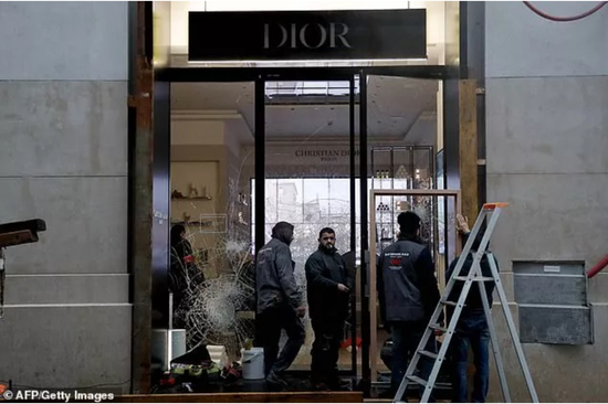 但在11月24日的抗议中,香榭丽舍大街Dior被砸被抢,损失百万欧元。