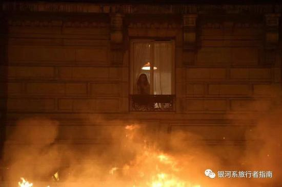 12月1日,巴士底狱广场,一位巴黎市民看着窗外。在她的眼里,巴黎在燃烧。
