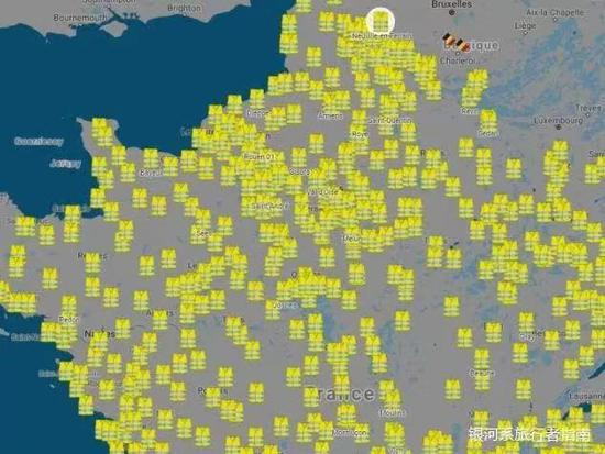 你感受一下,这是11月17日,黄马甲在法国全国2000多个点游行的分布图▼
