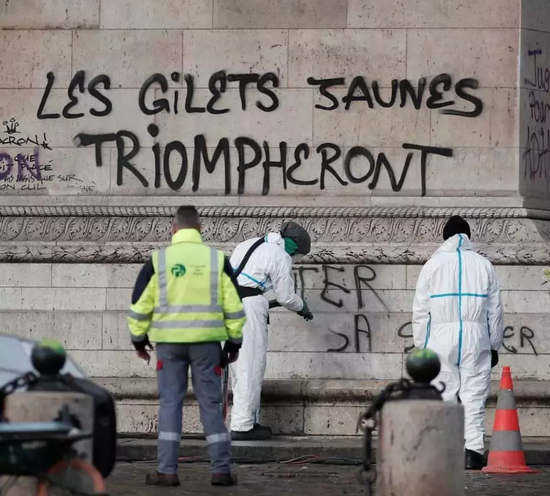 12月2日,巴黎开始清洁凯旋门上的喷涂。