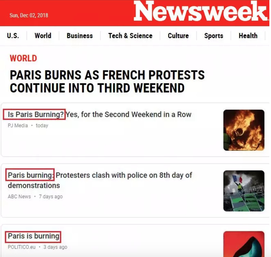 “巴黎烧了吗?”“巴黎在燃烧”,这些也是国际媒体在此次事件中用的最多的标题。
