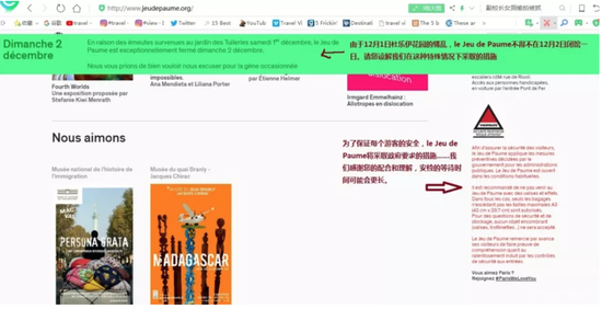 但即便这样,画廊还是受到了游行的影响,不得不在12月2日闭馆一日,平时的安检时间也将更长。这是来自官网的截图▼