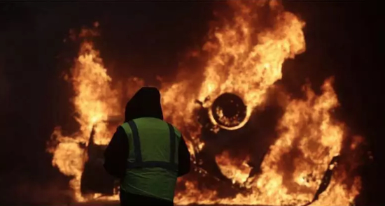 这就是那辆在画廊下燃烧的车辆,和纵火的黄马甲们▼