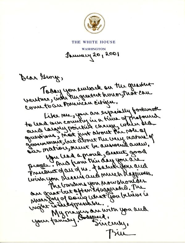 1993年, 当比尔·克林顿进入白宫时,他发现一封来自被他击败的对手的信,当然这个人便是George H.W.Bush。