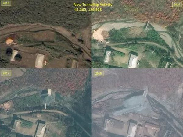 CNN公布的永宗洞附近一处新的导弹基地2013、2014、2017、2018四年变化对比卫星图像。来自CNN相关新闻网页截图。