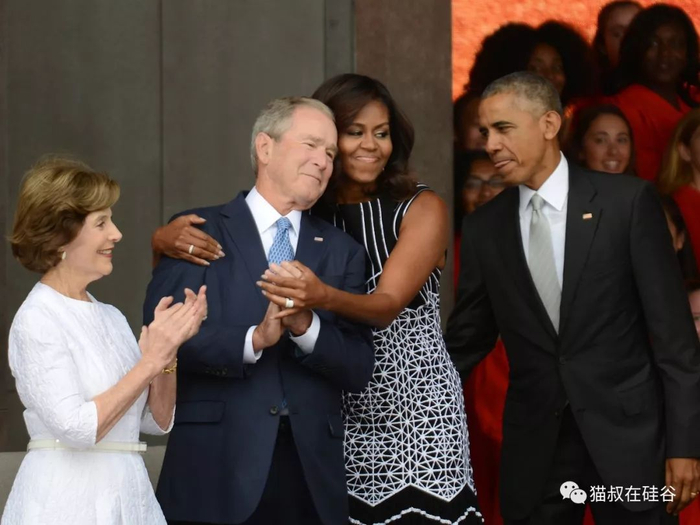 然而,这两人还真的是好友,奥巴马夫人对小布什总统还评价颇高。而且奥巴马一家和布什家族的关系相当和谐。