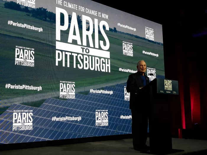 12月4日,他特意赴“白宫第一站”爱荷华州为参选试水、热身,出席彭博公司所投资的环保纪录片《从巴黎到匹兹堡》首映式: