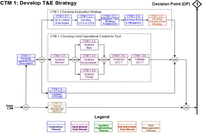 (1)CTM1—策划试验与评估策略。依据军队联合作战需求对被测武器装备系统或体系进行试验方案研究,制定试验策略和指标评价体系;