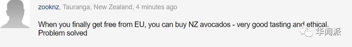 还有网友把这和“脱欧”联系起来,认为只要“脱欧”了,就可以从新西兰进口牛油果了,“非常好吃又来源干净,问题解决了!”