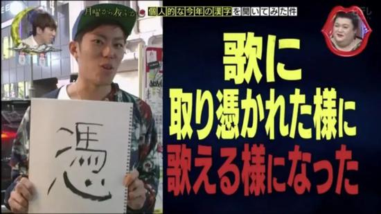 他今年的关键字是:”憑“,在日语里“取り憑かれる”的意思是:被。。。附身,为。。。着迷。