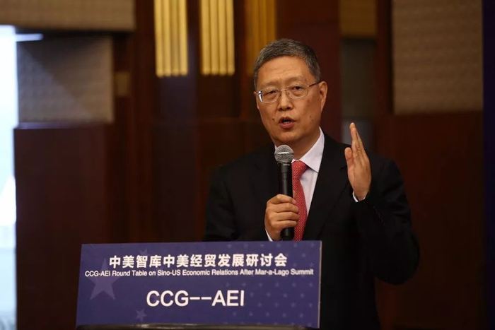 2017 年5 月18 日,何亚非在北京召开的中美智库中美经贸发展研讨会上发言。