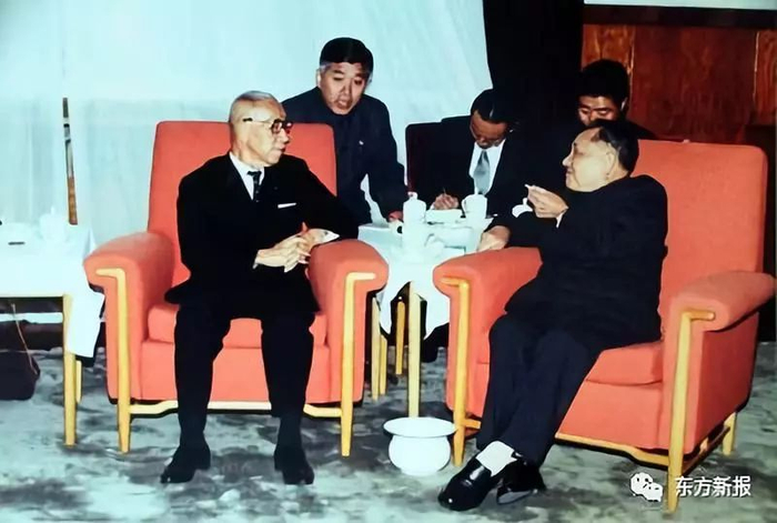松下来华受到了国宾级别的接待,邓小平与之亲切交流。