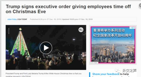 《今日美国》:特朗普签署行政命令 在平安夜给政府雇员放假