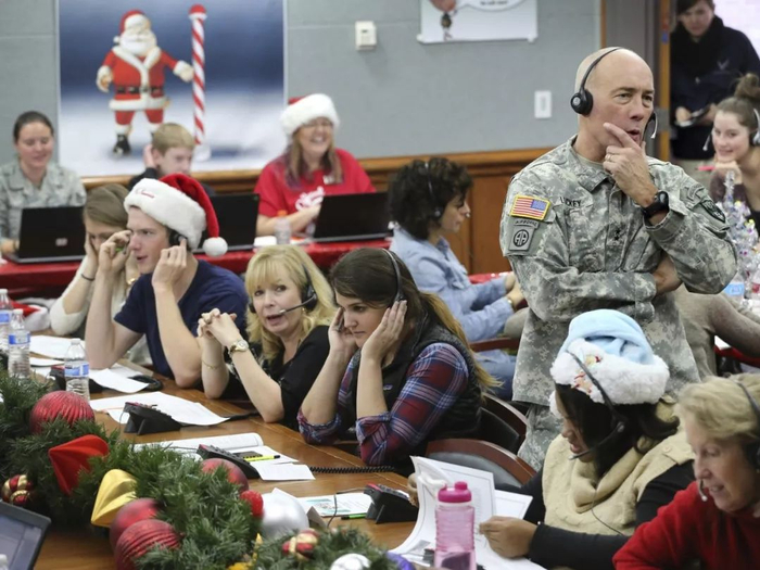 每年NORAD都会在12月24日组织志愿者接听孩子们的电话或者回复他们的邮件,向他们报告圣诞老人的位置。今年的志愿者据说有1200多名,连特朗普都是其中之一。