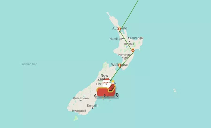 圣诞老人的移动速度非常快。北京时间今天晚上18:48分我看的时候他还在新西兰最北端的奥克兰,十多分钟以后再看,发现他已经快要走完整个新西兰了。