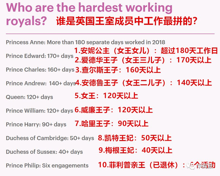 就在前几天,英媒还盘点了英国王室各成员一年来的工作量。今年英女王的女儿安妮公主以超过180天以上的“工时”连续第三年蝉联冠军。