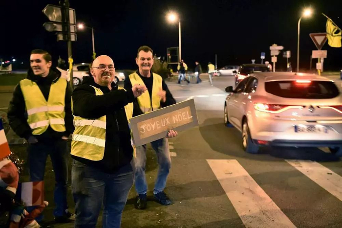 法国“黄衫”运动并没有因圣诞节而停止脚步。12月24日平安夜,身着黄衫的民众在各地公路转盘庆祝节日,不少民众为他们送去节日大餐表示对运动的支持。前一天,马克龙携1300人份的香槟和鹅肝赴非洲乍得,与当地法国驻军一起过圣诞。