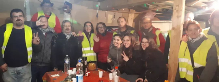 法国“黄衫军”大部分为巴黎地区以外的居民,由于交通和经费限制,最近两次示威集会赶到巴黎的人数有所减少,但他们继续坚守在当地,并一如既往、甚至更多地获得了老乡的理解和支持。上图为法国各地交通要塞和高速路口没有回家,与“同志”一起过节的黄衫军。他们表示“过去是一个人或者一家人孤独地、羞耻地过着穷日子。运动之后发现原来有这么多努力工作却艰辛度日的法国人。大家在一起互相理解、一起斗争,感受到了团结精神和家人一般的温暖。”