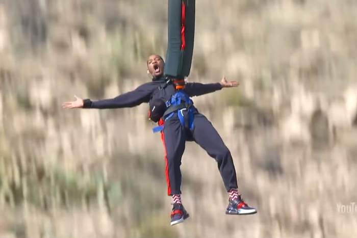 他用蹦极来庆祝自己的50岁生日,全程拍摄。