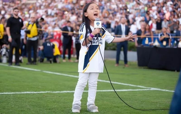 7岁的亚裔小女孩 Malea Emma 在选拔赛里击败所有对手,获得了在美国职业足球联盟洛杉矶银河队的一场比赛开赛前演唱美国国歌的机会。