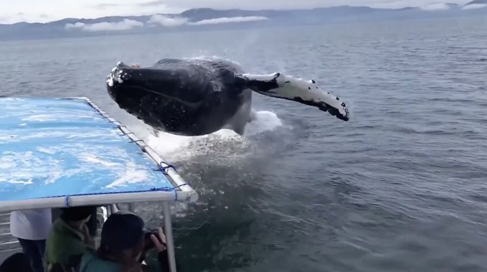 不管是在阿拉斯加,一只巨大的座头鲸在游船边上破水而出,落水时激起的水花溅湿了所有的游客;