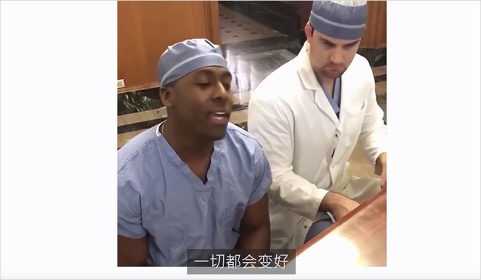 美国明尼苏达周罗切斯特市,两名手术医生合唱《一切都会好的》,来帮助病人缓解紧张的情绪。