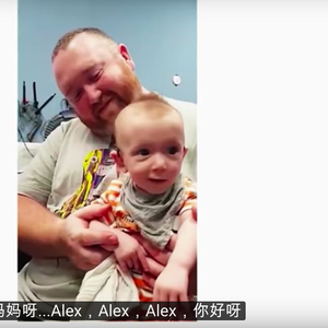 妈妈Jen对着他说,“Hello, it’s mummy”。在助听器的帮助下,Alex听见了妈妈的声音,用兴奋的笑来回应妈妈。这是他第一次听见这个世界。