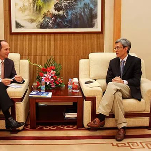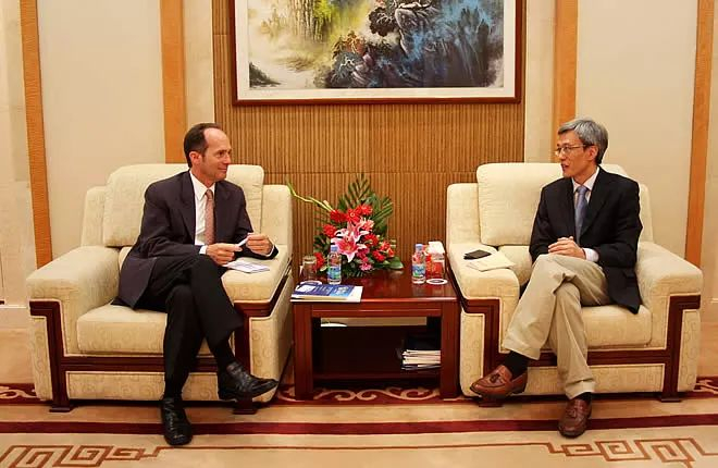 2016年9月10日,陈东晓在上海国际问题研究院会见美中贸易全国委员会会长傅强恩(John Frisbie)。