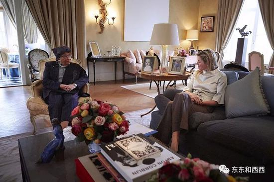 王后玛克西玛接待时任利比里亚女总统,也在这里↓↓