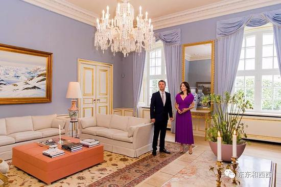 不过,年轻一代的北欧王室都更喜欢简洁风。去年丹麦王储夫妇办家宴,这么高大的客厅,配方形咖啡桌和沙发椅,点缀大盆绿植和图书↓↓