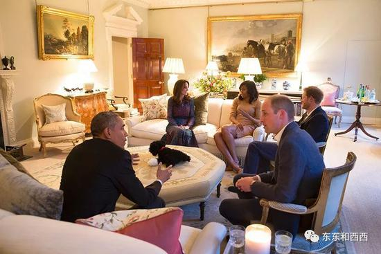 威廉和凯特住肯辛顿宫1A,有22个房间,外建筑经常被拍,只有2016年奥巴马夫妻拜访时才内部曝光。