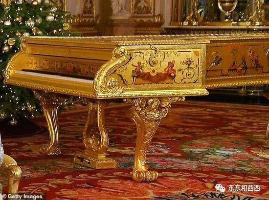 所以这台钢琴不只金光耀眼,更是独一无二的传家宝,以前放在白金汉宫国宾厅当展品,一露面就成为话题。