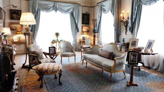 查尔斯娶卡米拉时,自己掏了160多万镑重新装饰。与身份相符,没有白金汉宫富丽堂皇,不过蓝色+金色也很淡雅。