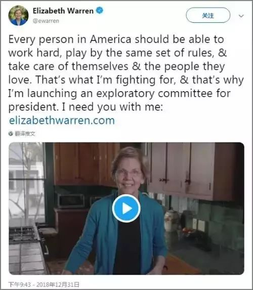 据英国《卫报》2019年1月2日报道,美国民主党参议员沃伦1月1日宣布有意代表民主党参加2020年举行的美国总统大选,并她已经组建好竞选委员会,以便下一步在民主党内部的初选中胜出。沃伦在宣布竞选前夕曾发布了一段视频,表达了她的政策立场。