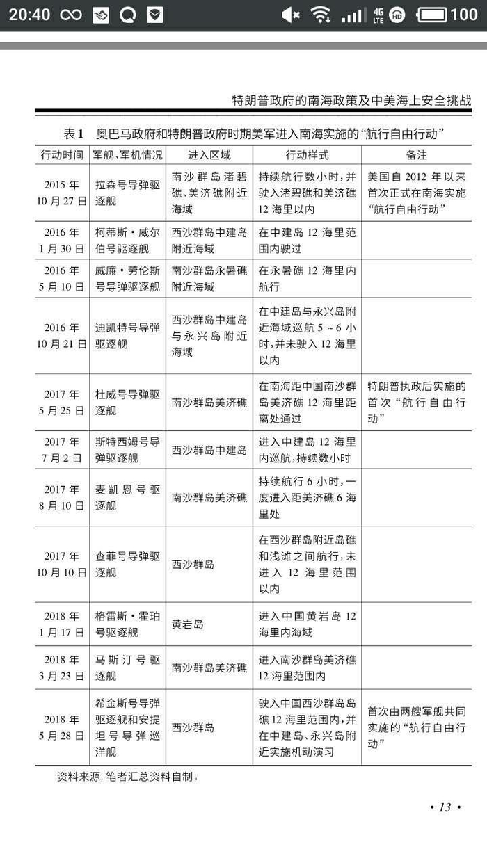特朗普政府执政以来,美国强化了在南海地区的“航行自由行动”,加大了美军舰机出入南海的频率,高调与日本在南海定期举行联合军演。2017 年 11月,特朗普在首次亚洲之行中提出了“开放与自由的印太战略”。特朗普政府的这些举动不仅屡屡挑衅中国的主权与安全,而且人为地加剧了南海局势的军事紧张。特别是2018 年5 月以来,美国的南海“航行自由行动”已经从原来的单舰单行发展到了双舰双行。从集中在南沙群岛扩展到了西沙群岛。再加上美日澳等国在南海的年度军事演习,以及在美日等国怂恿和支持下,英国和法国等国也宣称要加入在南海的“自由航行行动”,南海的军事紧张态势在不断上升。