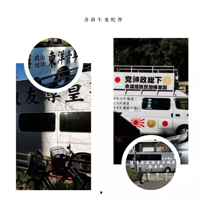1月2日早上6点,东京皇居附近。两三辆日本右翼的街道宣传车路过,车身上写满了“天皇亲政”、“恢复大日本帝国宪法”、“世界皇化”等右翼口号,旁边日本人也随即交流起来。我身后一对从北海道远道而来的中年夫妇便提到,每逢各类节日,全国各地总会有一些右翼分子喊出“尊皇”口号,但从实际主张来看,他们其实都是对天皇的地位与作用有所不满,希望天皇能够拿出一个“皇帝”的气势“君临天下”,打破日本的发展停滞状态。