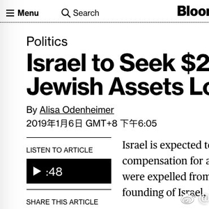 彭博社近日援引以色列当地电视台消息,以色列预计向八个中东国家索赔共2500亿美元,因以色列建国后,犹太人在这些国家遭驱逐或被迫逃亡,导致财产损失。