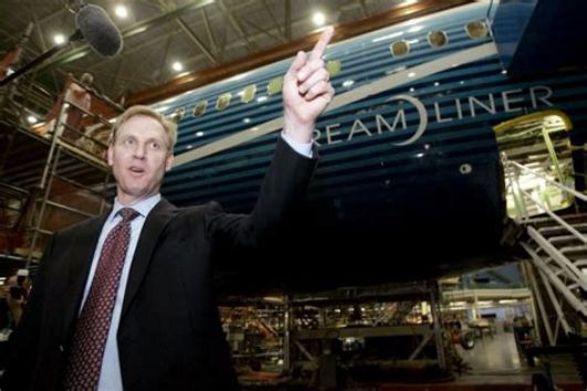 资料图片:在波音公司任职期间的沙纳汉与波音787客机合影。(图片来源于网络)