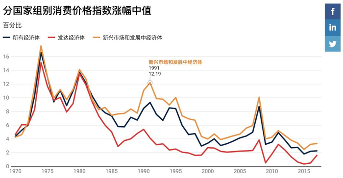 3。 在新兴市场和发展中经济体,想要维持过去较低和稳定的通胀率是没有保障的。过去10年抑制通胀的周期性压力正在逐渐消散。过去50年帮助降低通胀的长期要素——全球贸易和金融一体化、稳健货币政策框架的广泛实行——有可能失去动力或者出现逆转。维持全球低通胀可能和实现低通胀一样,成为一项挑战。