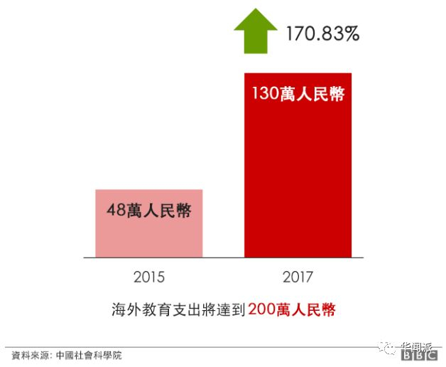以海外教育成本为例,据中国社科院数据,上海的子女海外教育支出成本,已经从2015年的48万人民币,上升到了2017年的130万人民币。而海外教育,只是将子女抚养成人所需成本中的冰山一角。