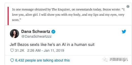 “这些短信看上去,好像是Bezos让Alexa帮他给情人发的。”