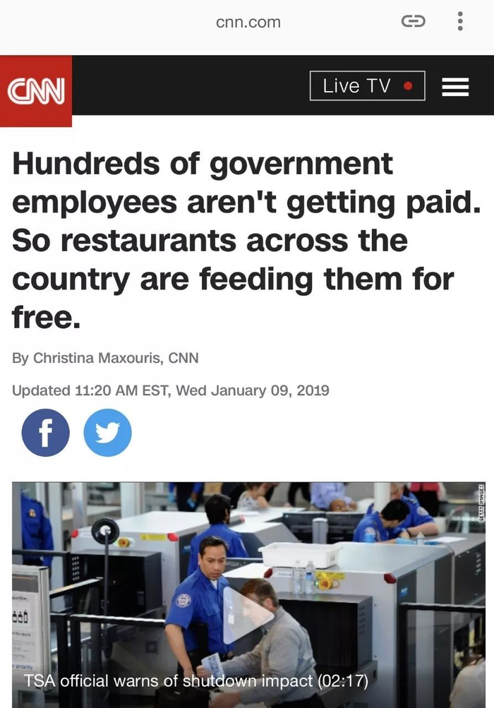 除了社区之外,美国全国的许多餐馆已经自发行动起来,向处于困境中的联邦政府公务员提供免费食物,避免他们在这个寒冷的冬季中喝西北风。
