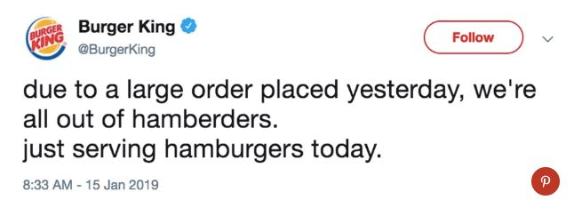 先是汉堡王官方账号发推特讽刺总统的拼写错误,说“因为昨天的大订单,hamberders卖完了,今天只卖hamburgers。”《赫芬顿邮报》、《商业内幕》等多家美媒都报道了这个错误。