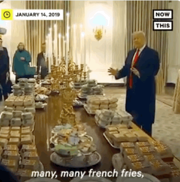 还是有一些美国媒体很“良心”地解读这一顿快餐盛宴,阐述了在政府停摆之际,特朗普通过请客传达出的政治信息不简单。