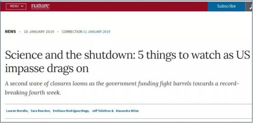 《自然》2019年1月10日:随着美国陷入僵局,需要关注5件事<https://www.nature.com/articles/d41586-019-00082-4>