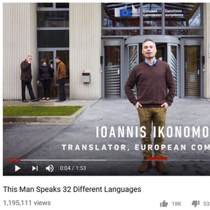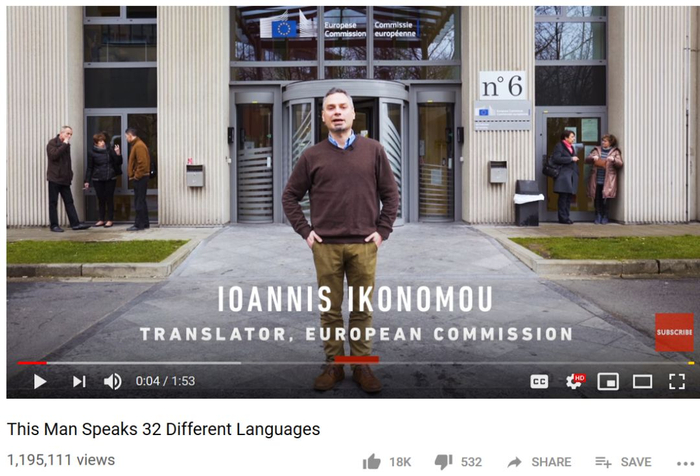 就是下面这位,欧盟委员会的专职翻译Ioannis Ikonomou。他的视频曾在社交媒体上被疯狂转发。